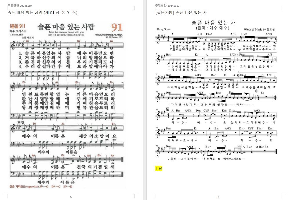 5. 찬송가 - 슬픈 마음 있는 사람 (새91장, 통91장)