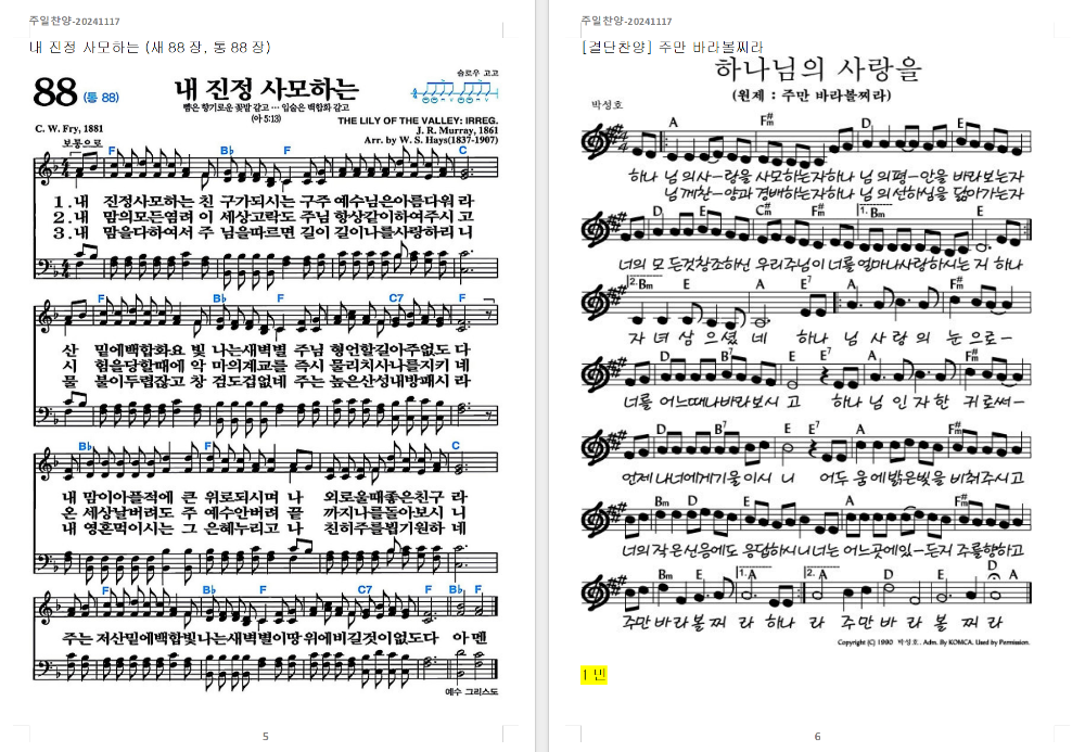5. 찬송가 - 내 진정 사모하는 (새88장, 통88장)