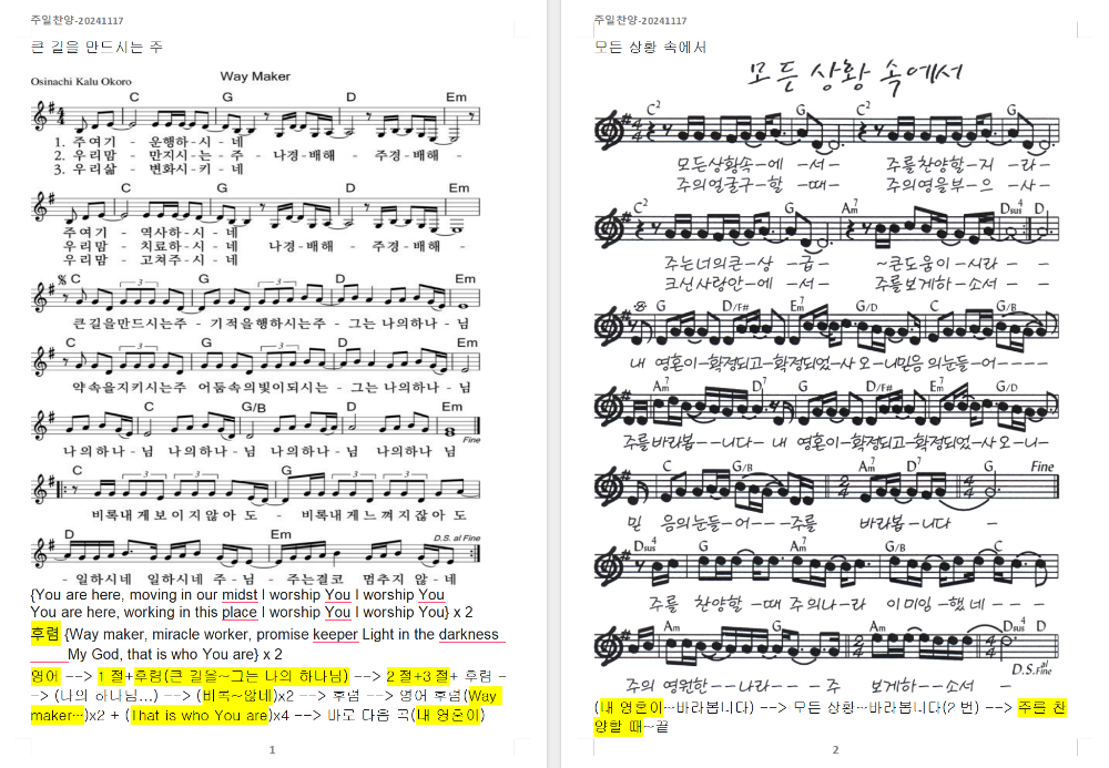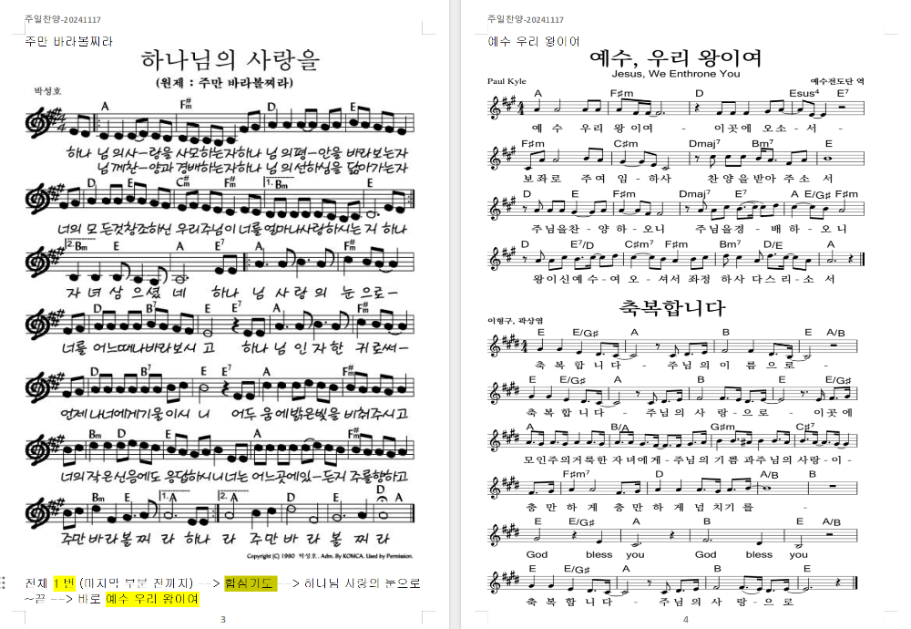 2024. 11. 17. 하늘소망교회 주일예배 찬양 콘티