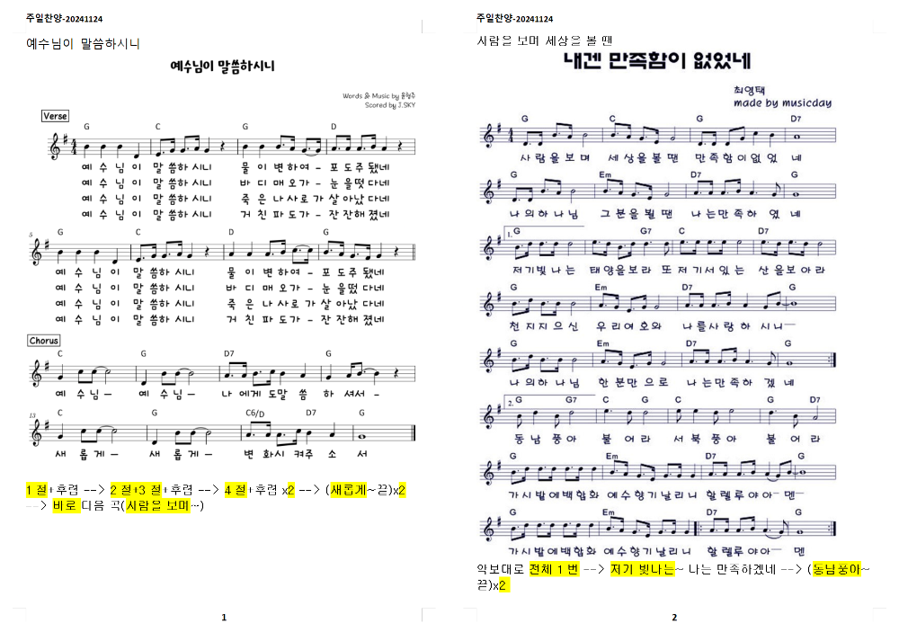 2024. 11. 24. 하늘소망교회 주일예배 찬양 콘티