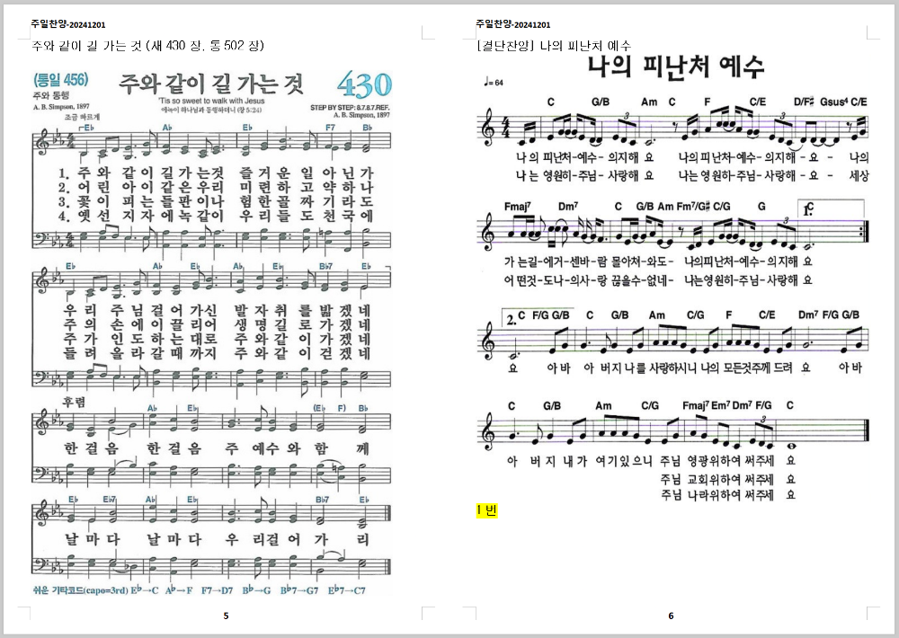 5. 찬송가 - 주와 같이 길 가는 것 (새430장, 통502장)