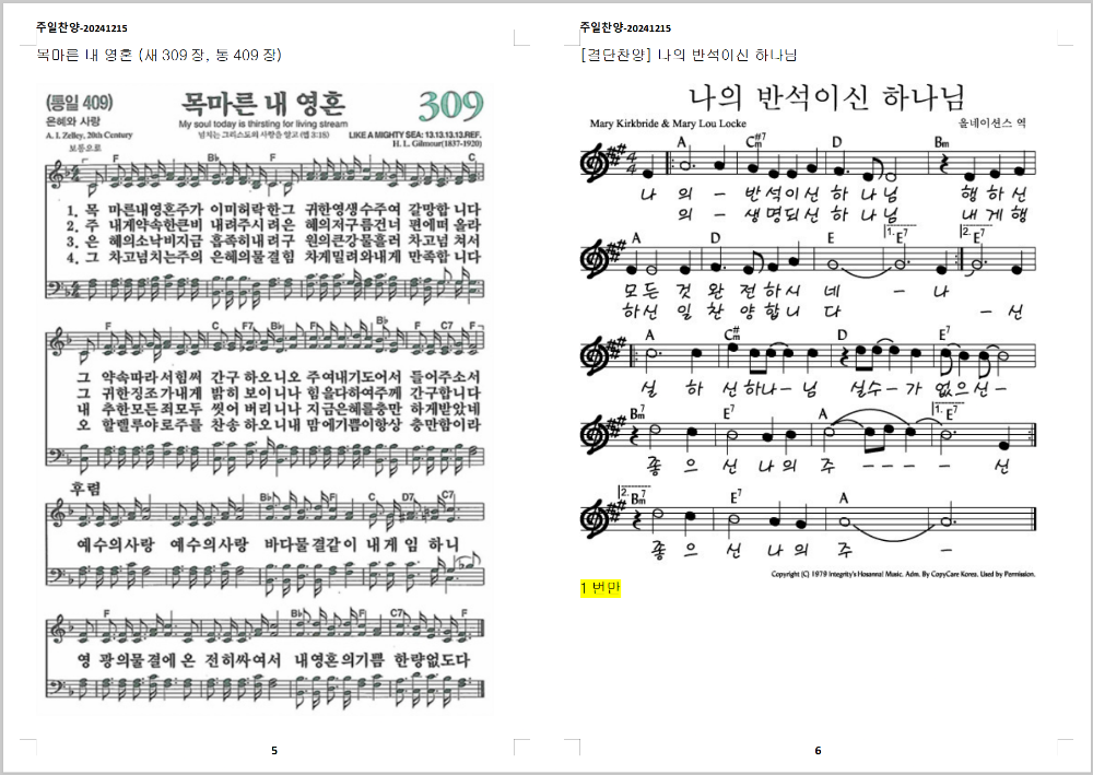5. 찬송가 - 목마른 내 영혼 (새309장, 통409장)