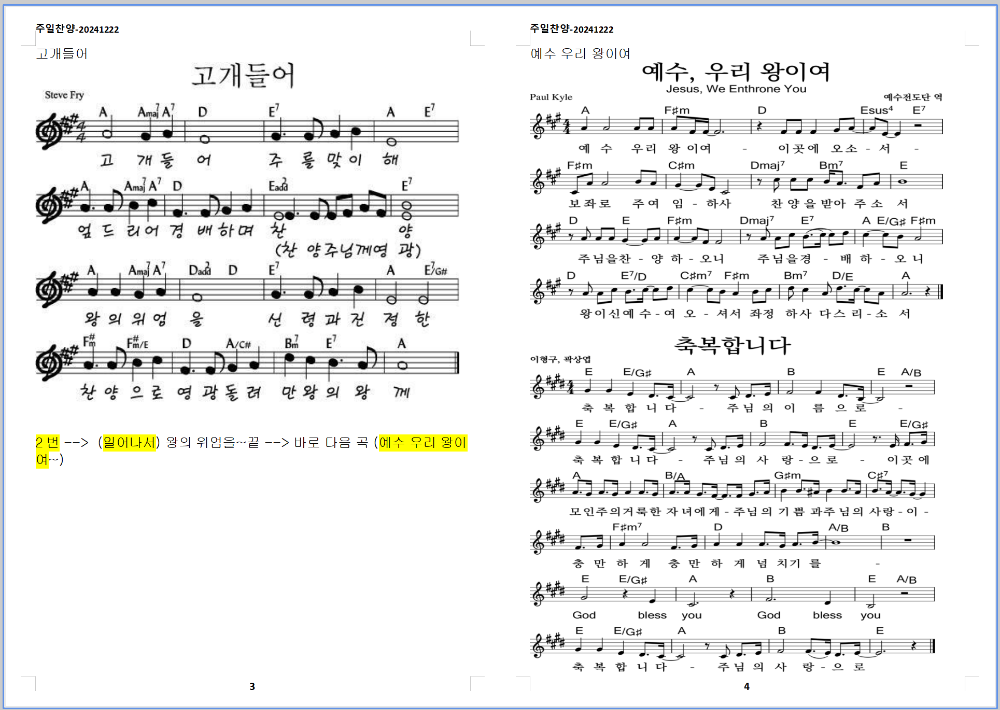 2024. 12. 22. 하늘소망교회 주일예배 찬양 콘티