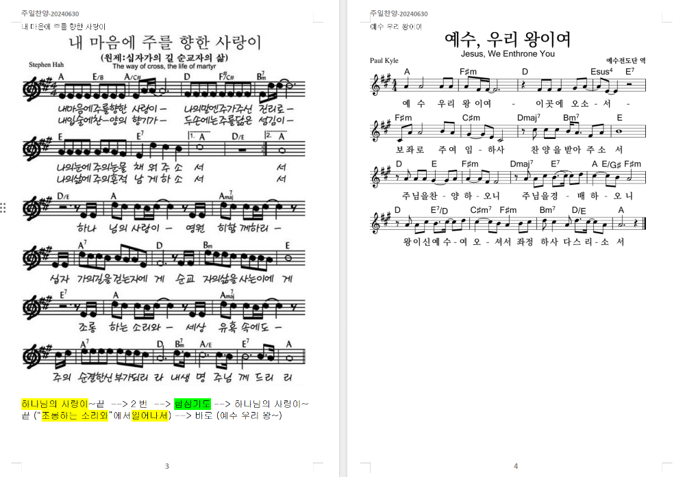 2024. 6. 30. 하늘소망교회 주일찬양 콘티