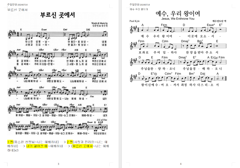 2024. 7. 14. 하늘소망교회 주일찬양 콘티