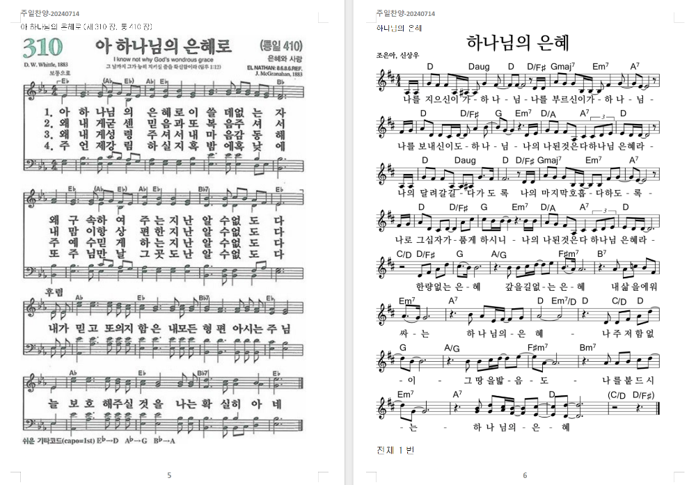5. 찬송가 - 아 하나님의 은혜로 (새310장, 통410장)