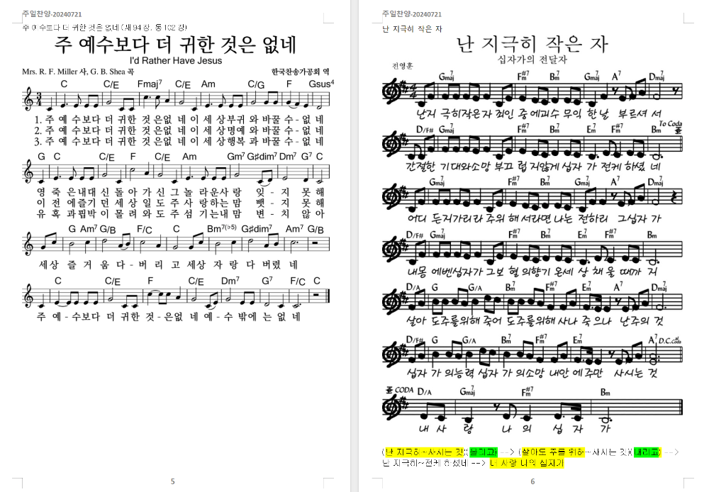 5. 찬송가 - 주 예수보다 더 귀한 것은 없네 (새94장, 통102장)