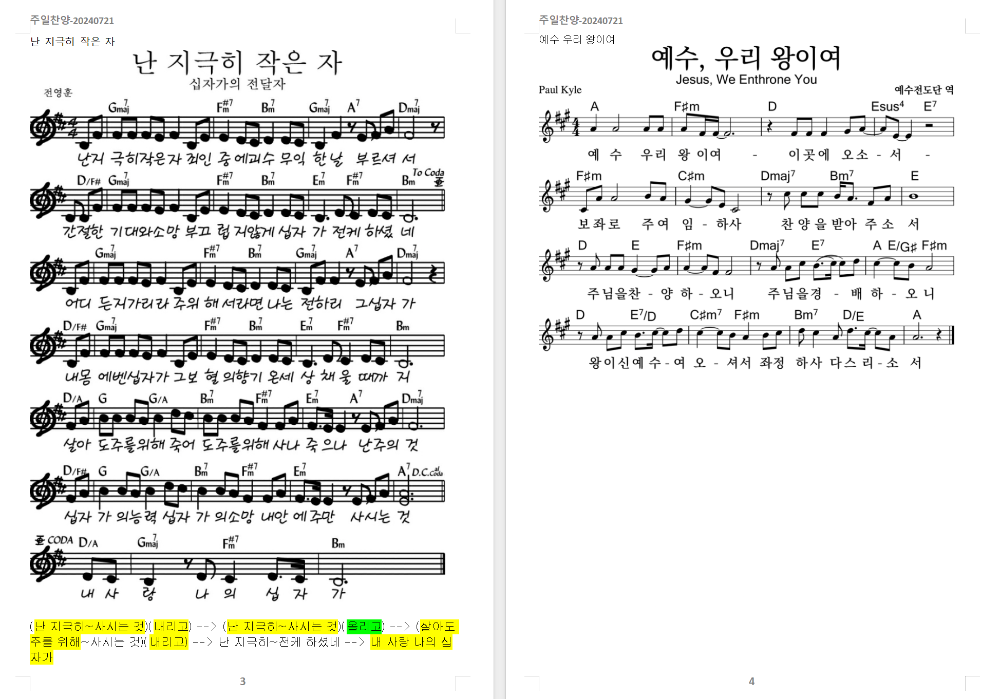 2024. 7. 21. 하늘소망교회 주일찬양 콘티