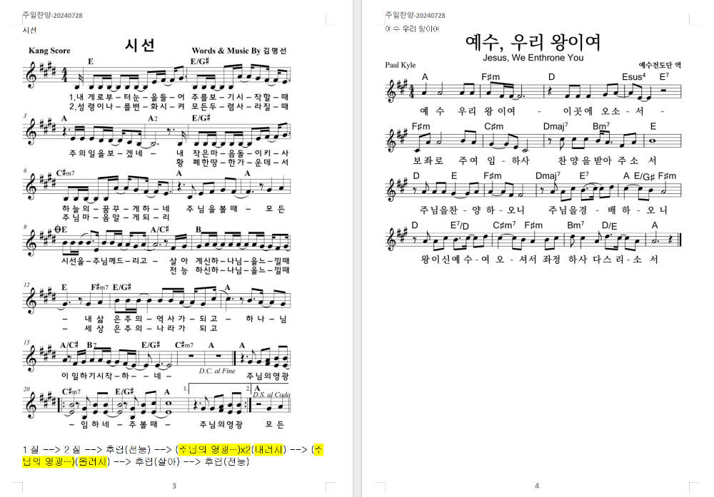 2024. 7. 28. 하늘소망교회 주일찬양 콘티