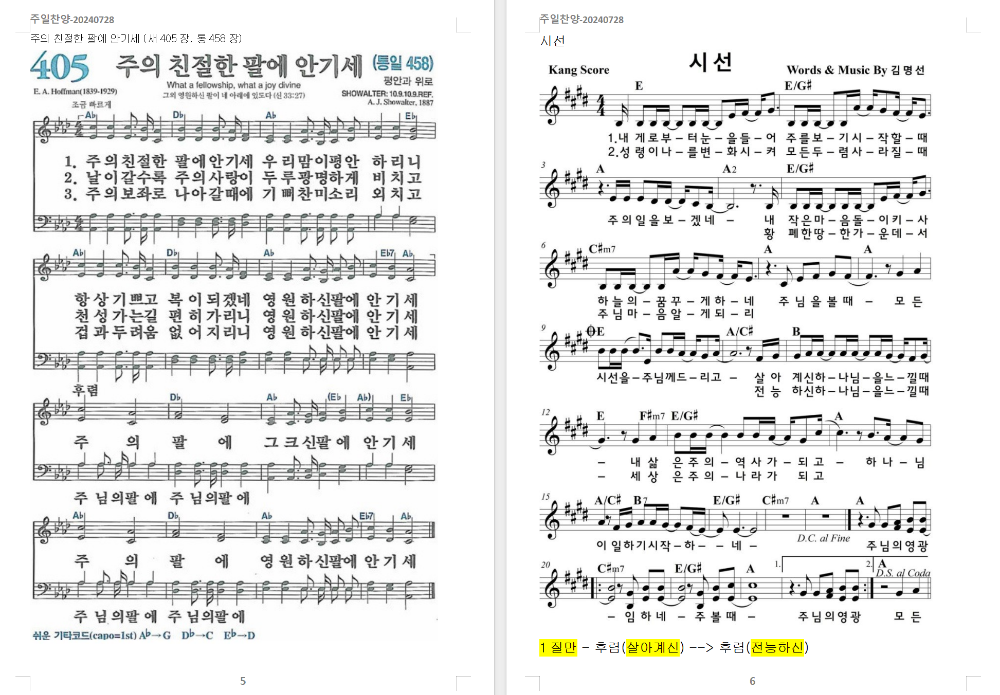 5. 찬송가 - 주의 친절한 팔에 안기세 (새405장, 통458장)