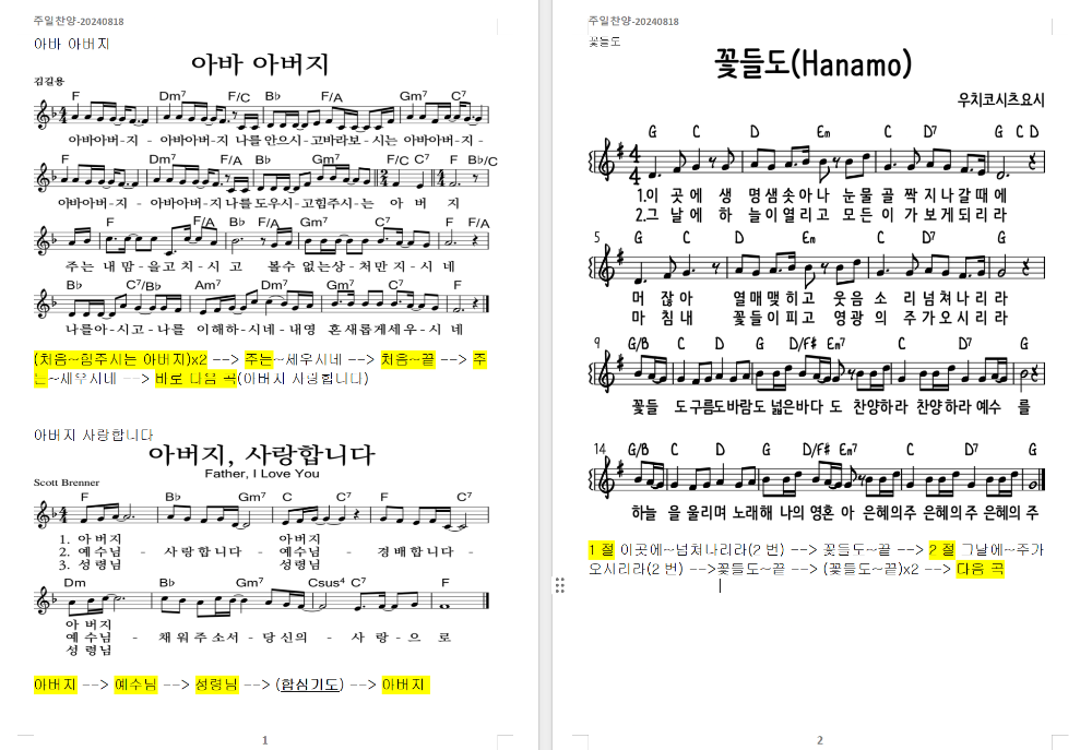 2024. 8. 18. 하늘소망교회 주일찬양 콘티