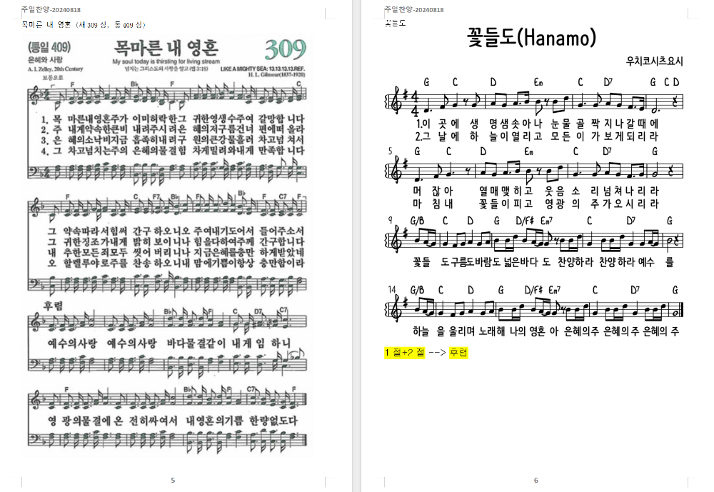 6. 찬송가 - 목마른 내 영혼 (새309장, 통409장)
