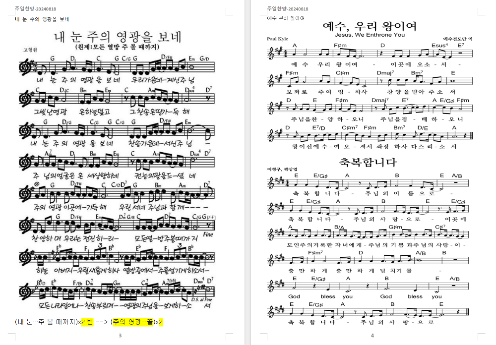 2024. 8. 18. 하늘소망교회 주일찬양 콘티