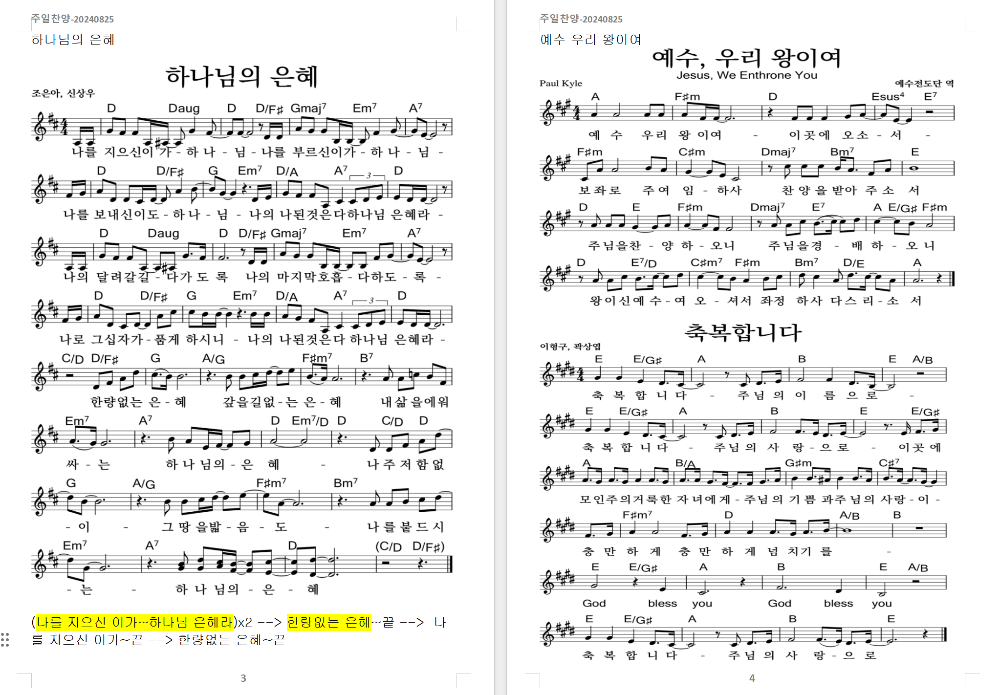 2024. 8. 25. 하늘소망교회 주일찬양 콘티
