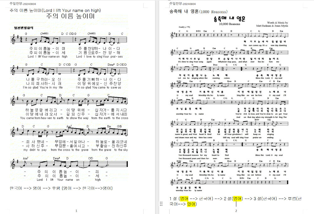 2024. 8. 4. 하늘소망교회 주일찬양 콘티