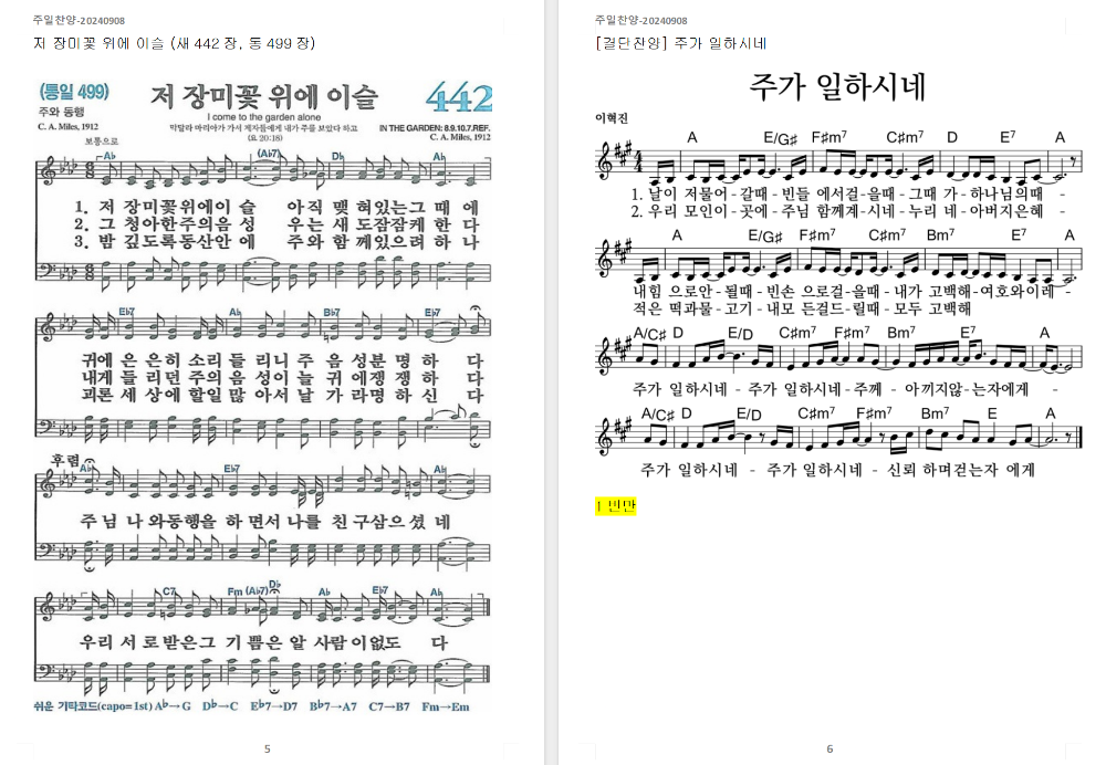5. 찬송가 - 저 장미꽃 위에 이슬 (새442장, 통499장)