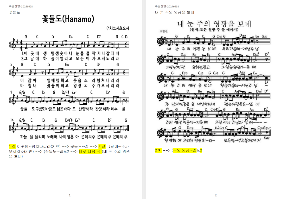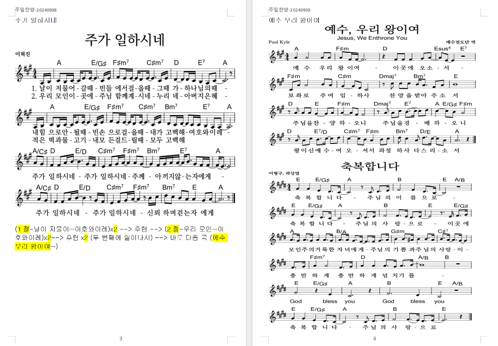 2024. 9. 8. 하늘소망교회 주일찬양 콘티