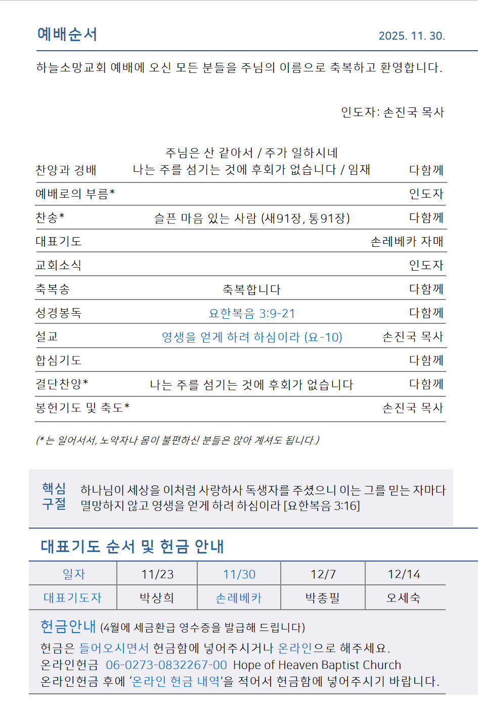 하늘소망교회 제 109호 주보