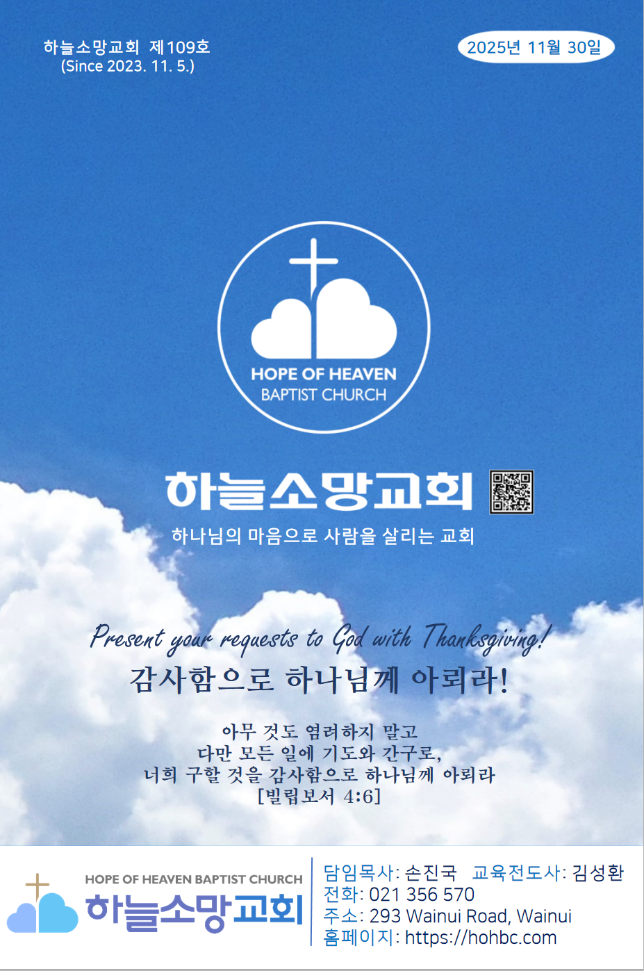 하늘소망교회 제 109호 주보