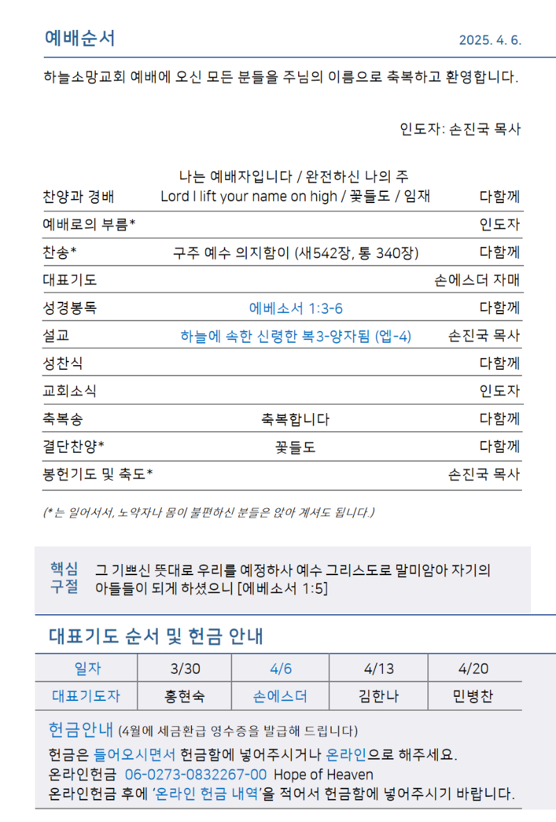 하늘소망교회 제 75호 주보
