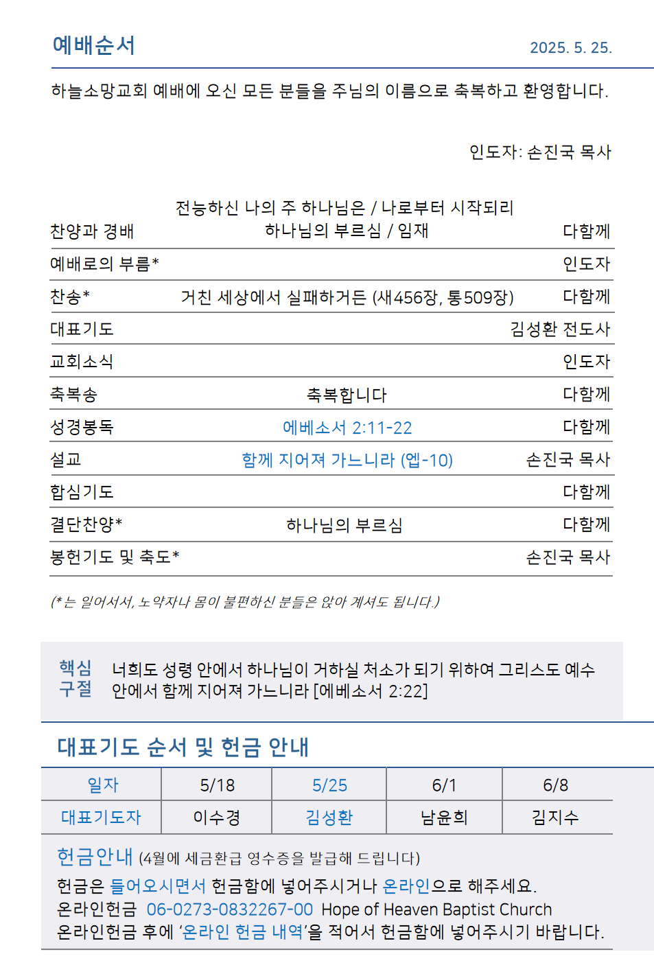 하늘소망교회 제 82호 주보