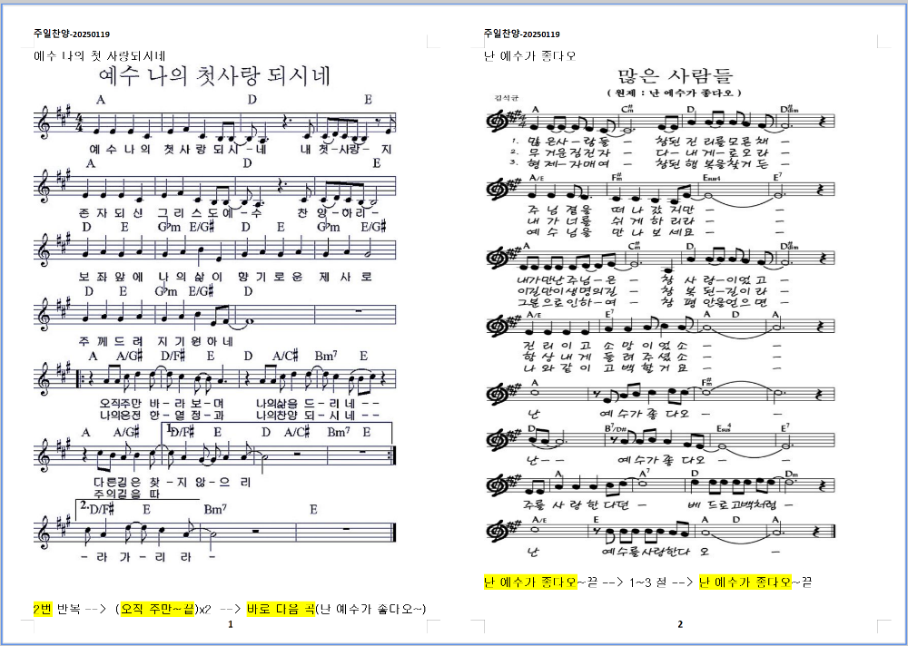 1. 예수 나의 첫 사랑되시네 (A코드)