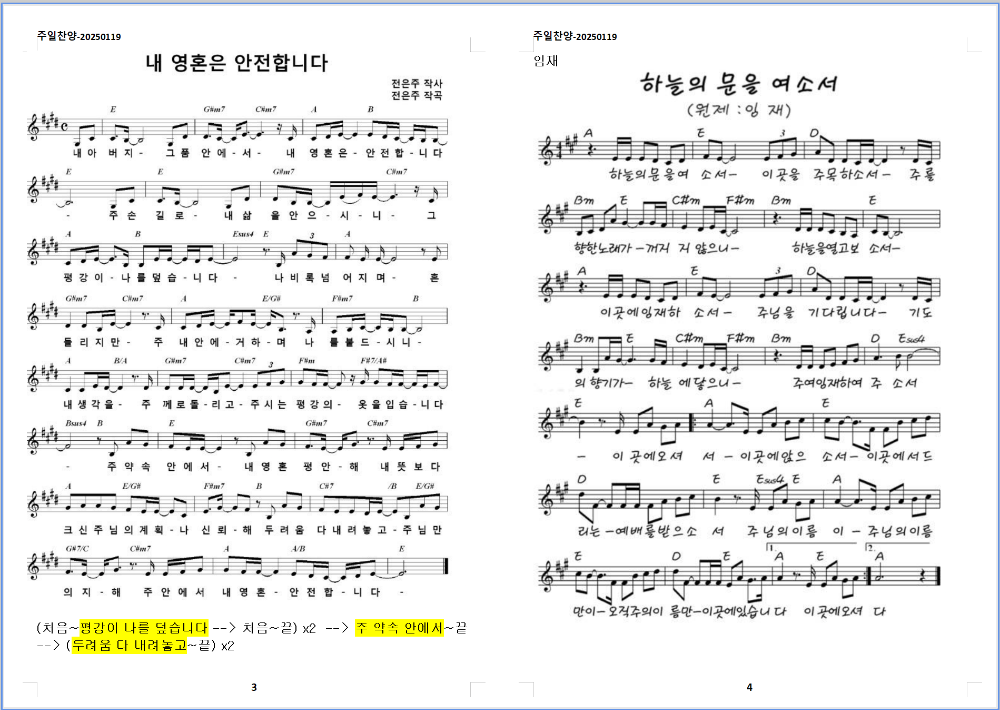 2025. 1. 19. 하늘소망교회 주일예배 찬양 콘티