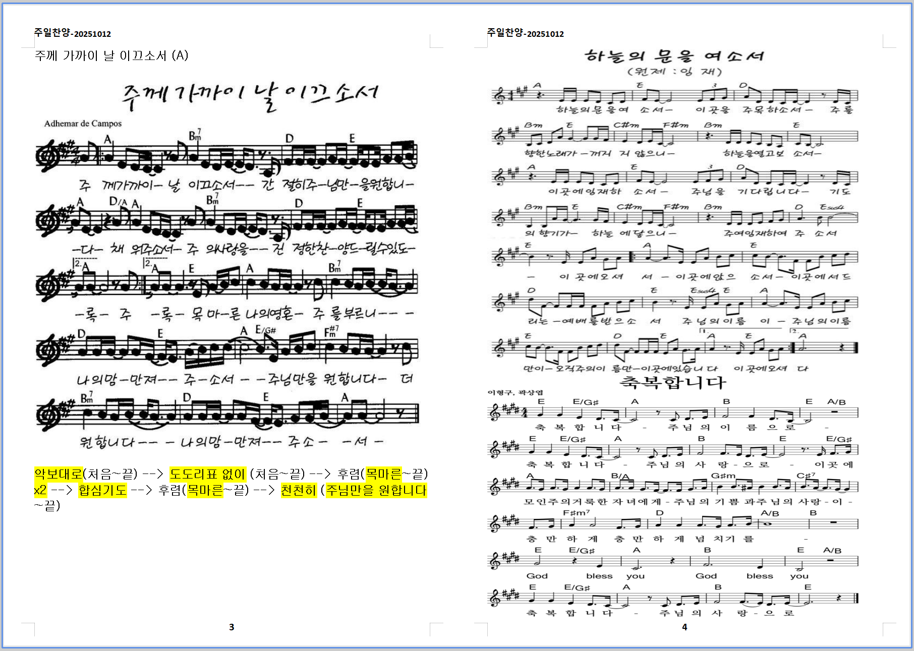 2025. 10. 12. 하늘소망교회 주일예배 찬양 콘티