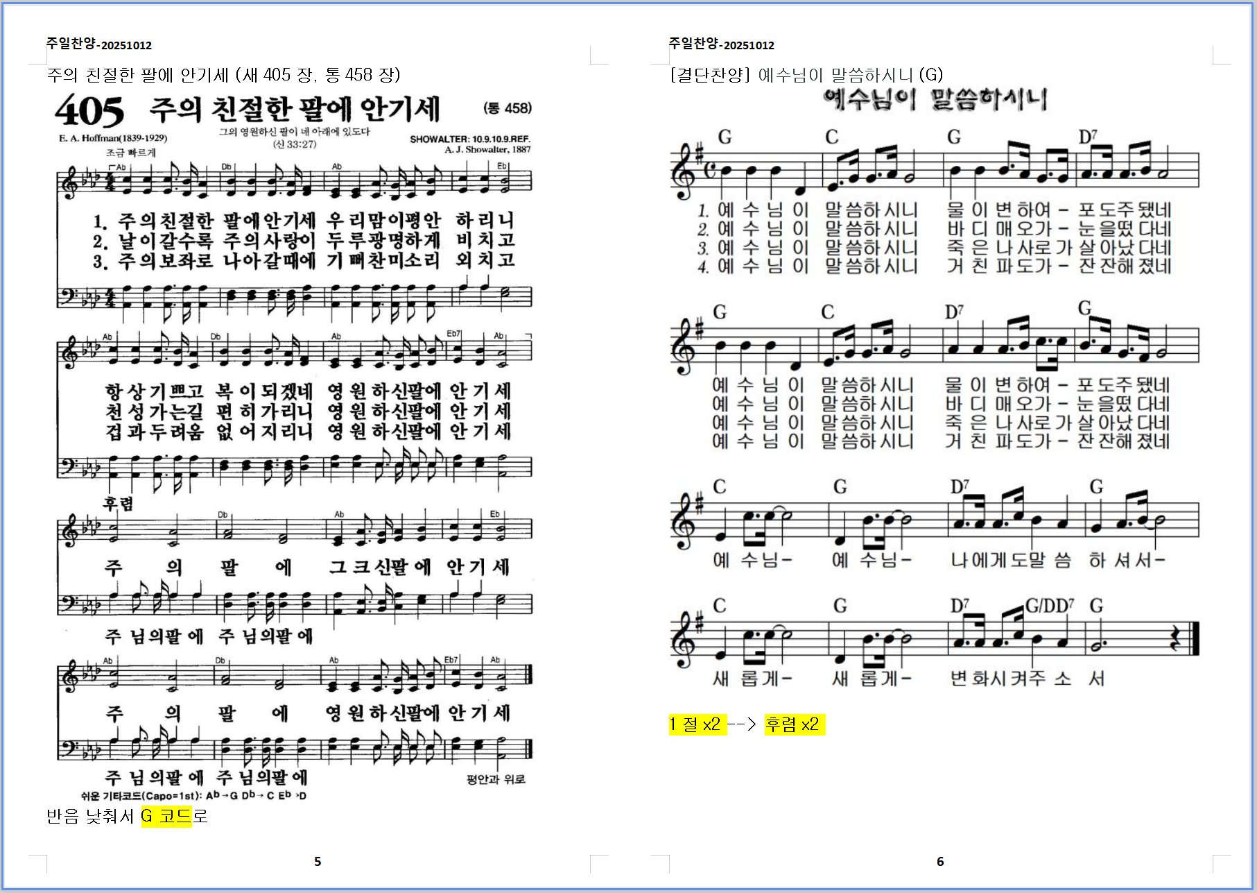 5. 찬송가 - 주의 친절한 팔에 안기세 (새405장, 통458장)