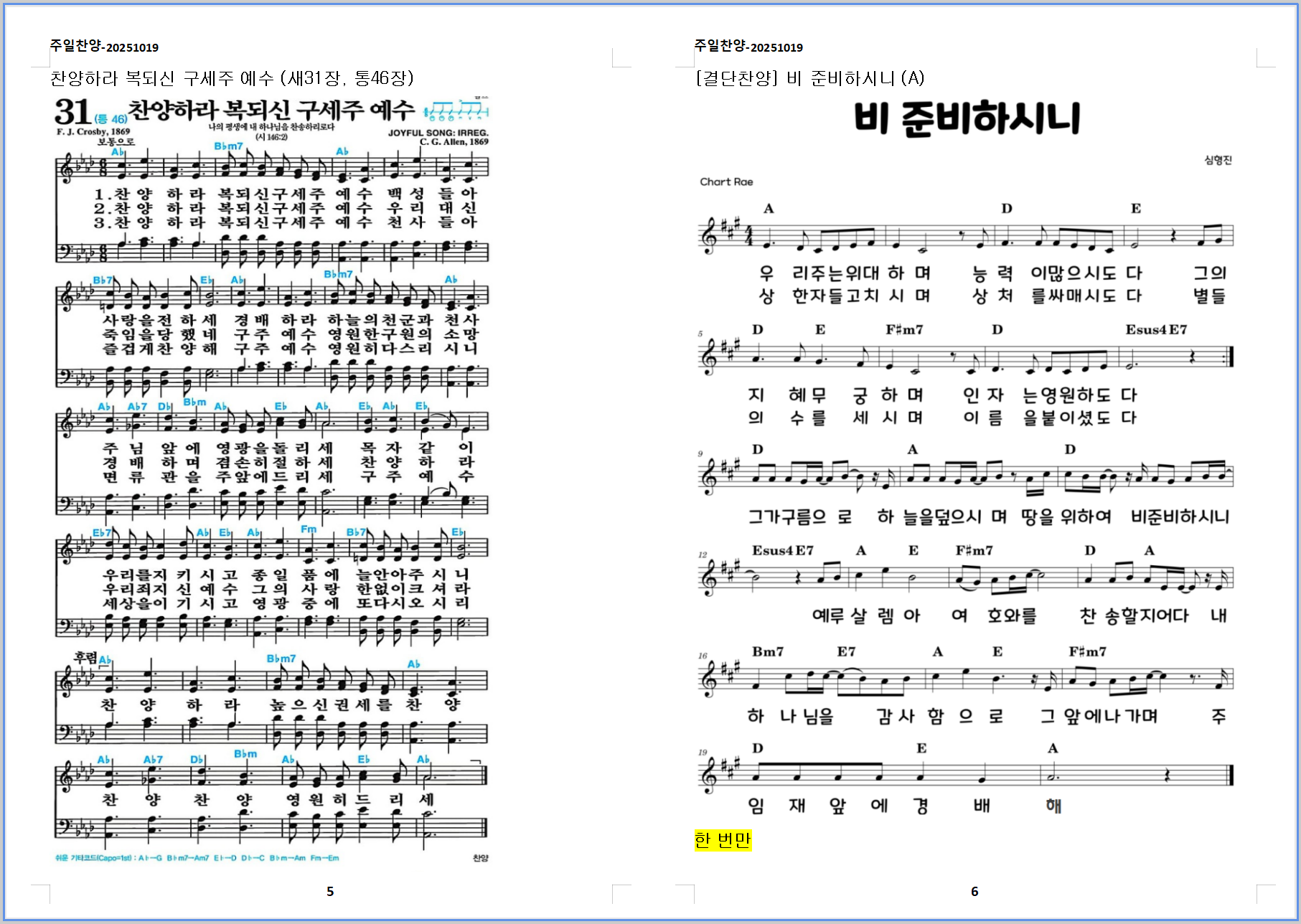 | 2025. 11. 2. 하늘소망교회 주일예배 찬양 콘티 (0) | 2025.10.31 |