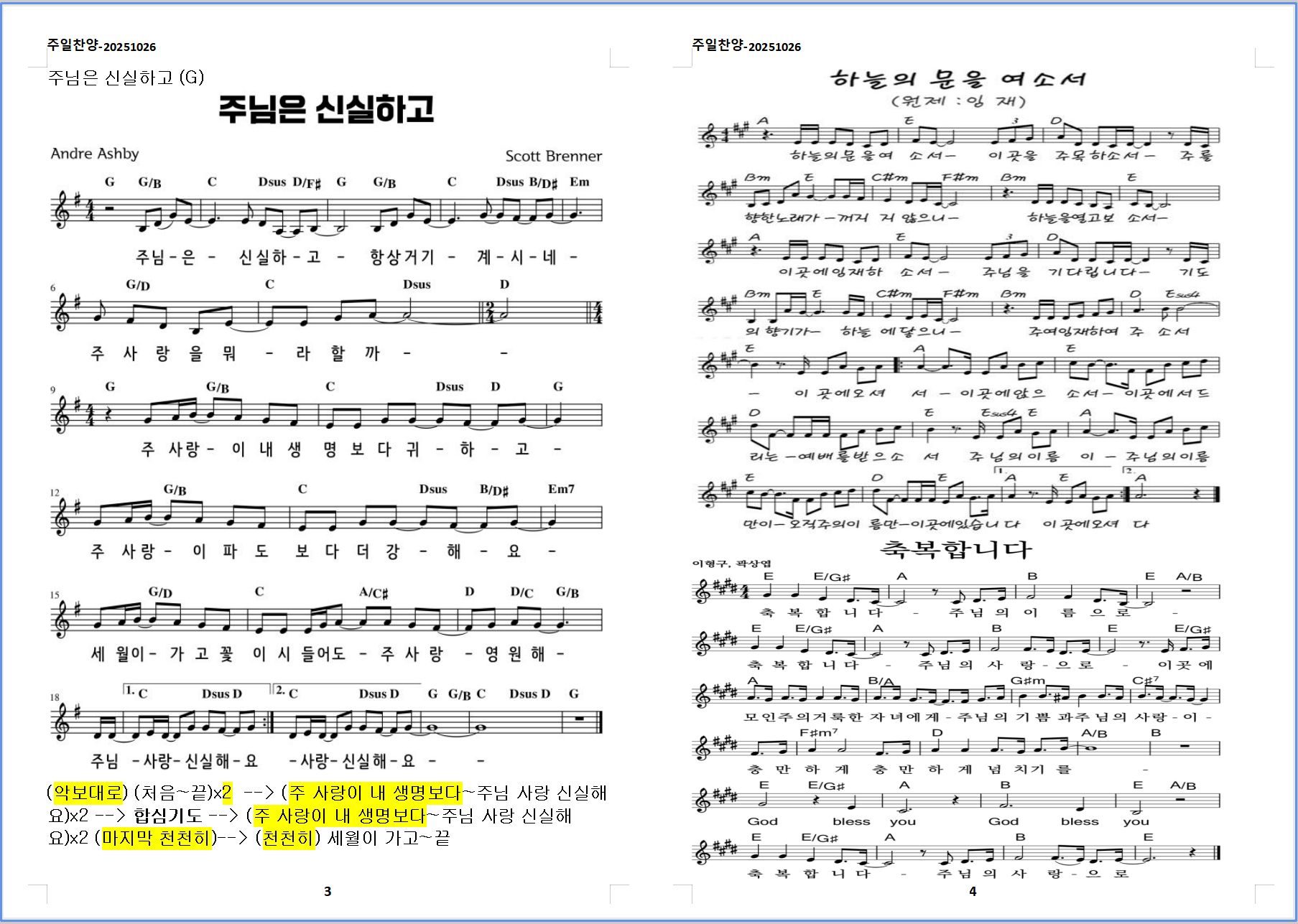 2025. 10. 26. 하늘소망교회 주일예배 찬양 콘티