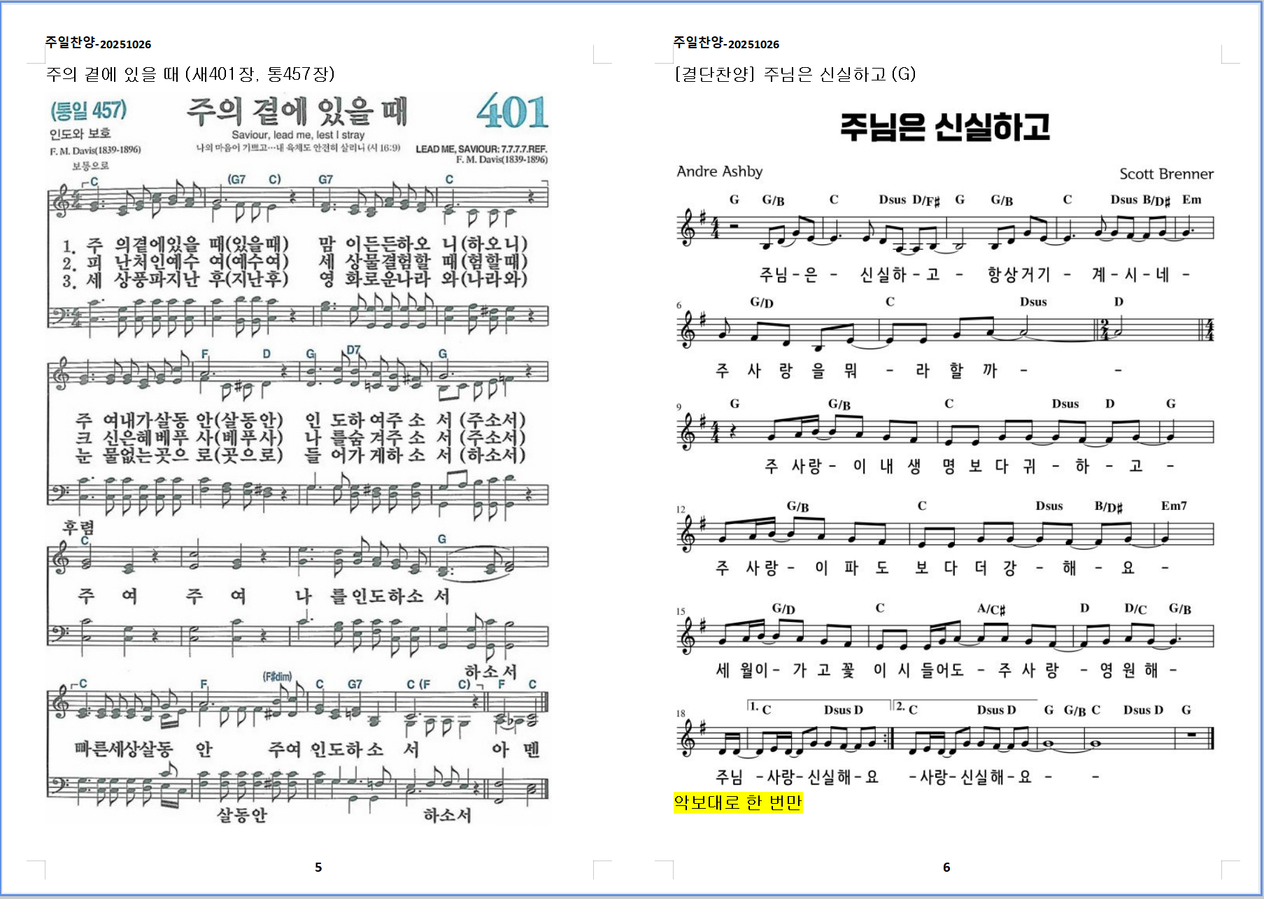 5. 찬송가 - 주의 곁에 있을 때 (새401장, 통457장)