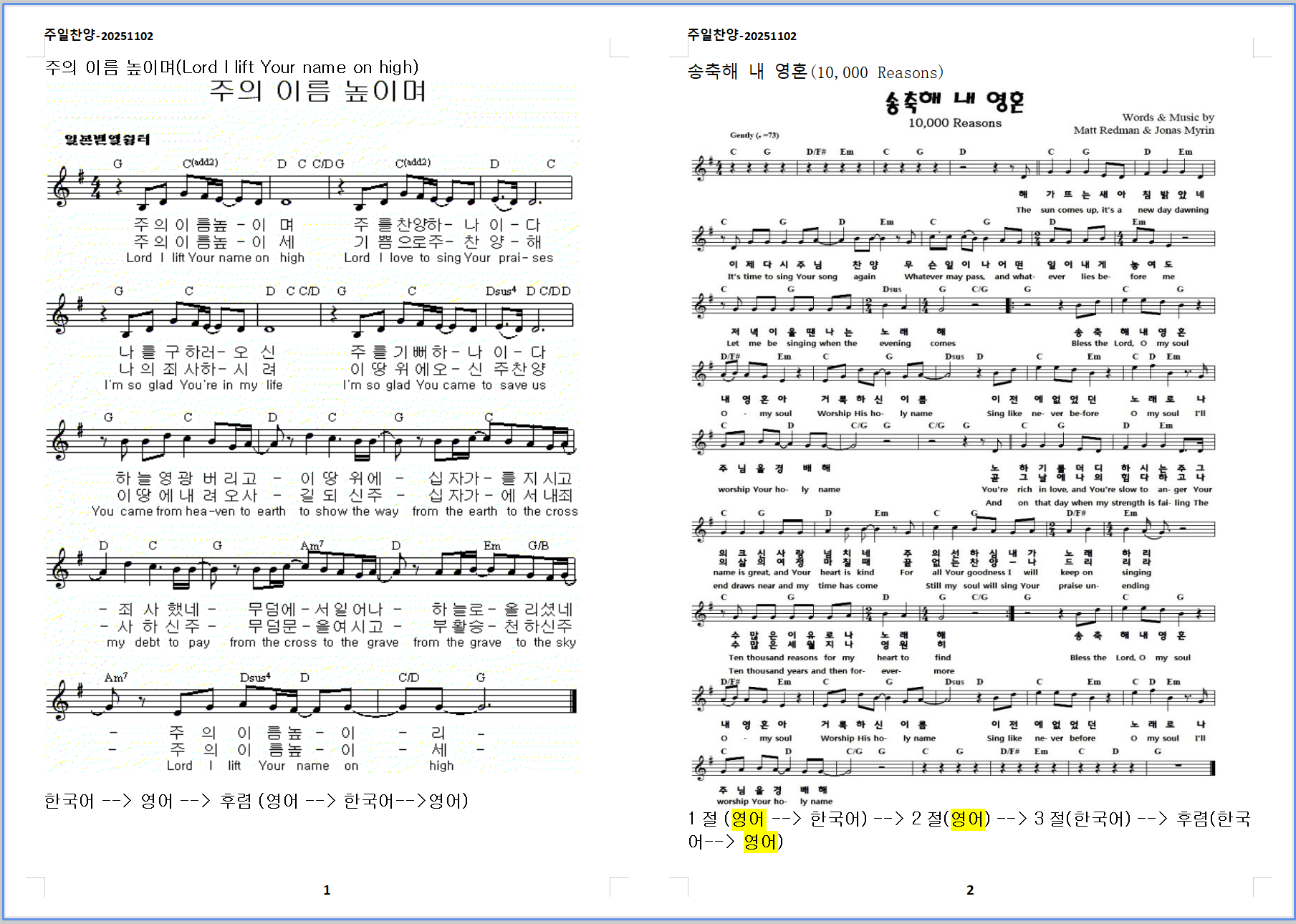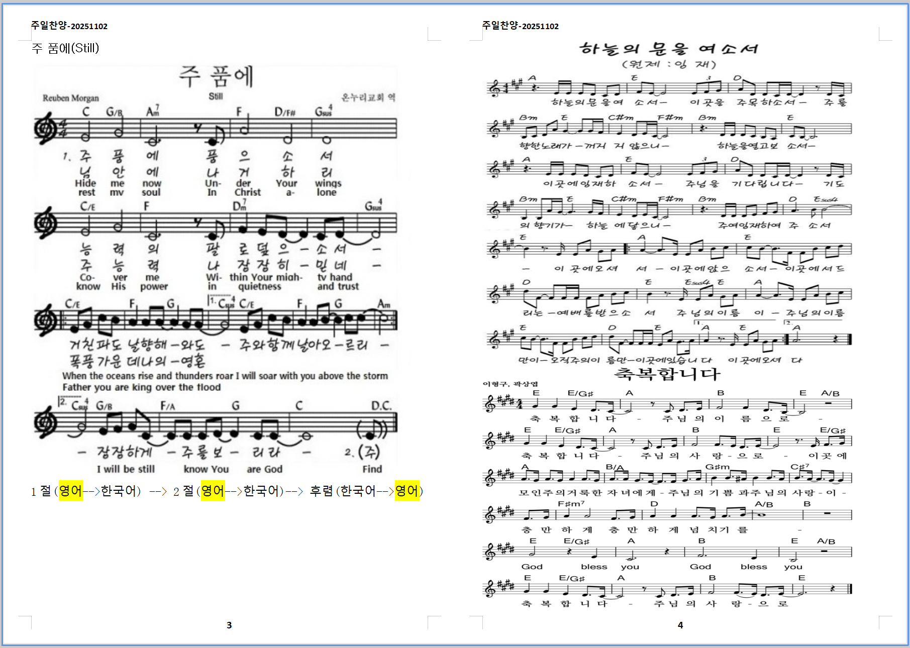 2025. 11. 2. 하늘소망교회 주일예배 찬양 콘티