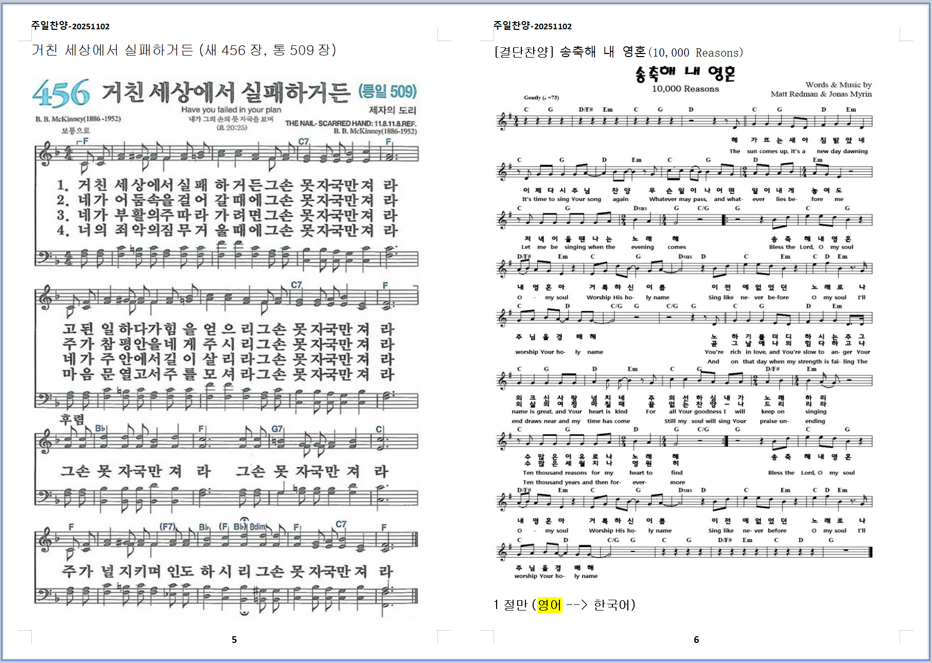 7. [결단찬양] 송축해 내 영혼(10,000 Reasons) (G)
