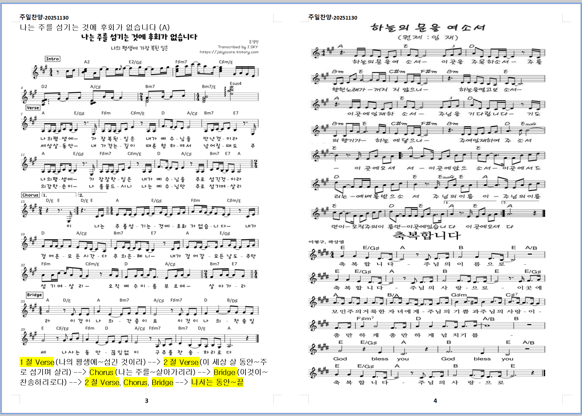 2025. 11. 30. 하늘소망교회 주일예배 찬양 콘티