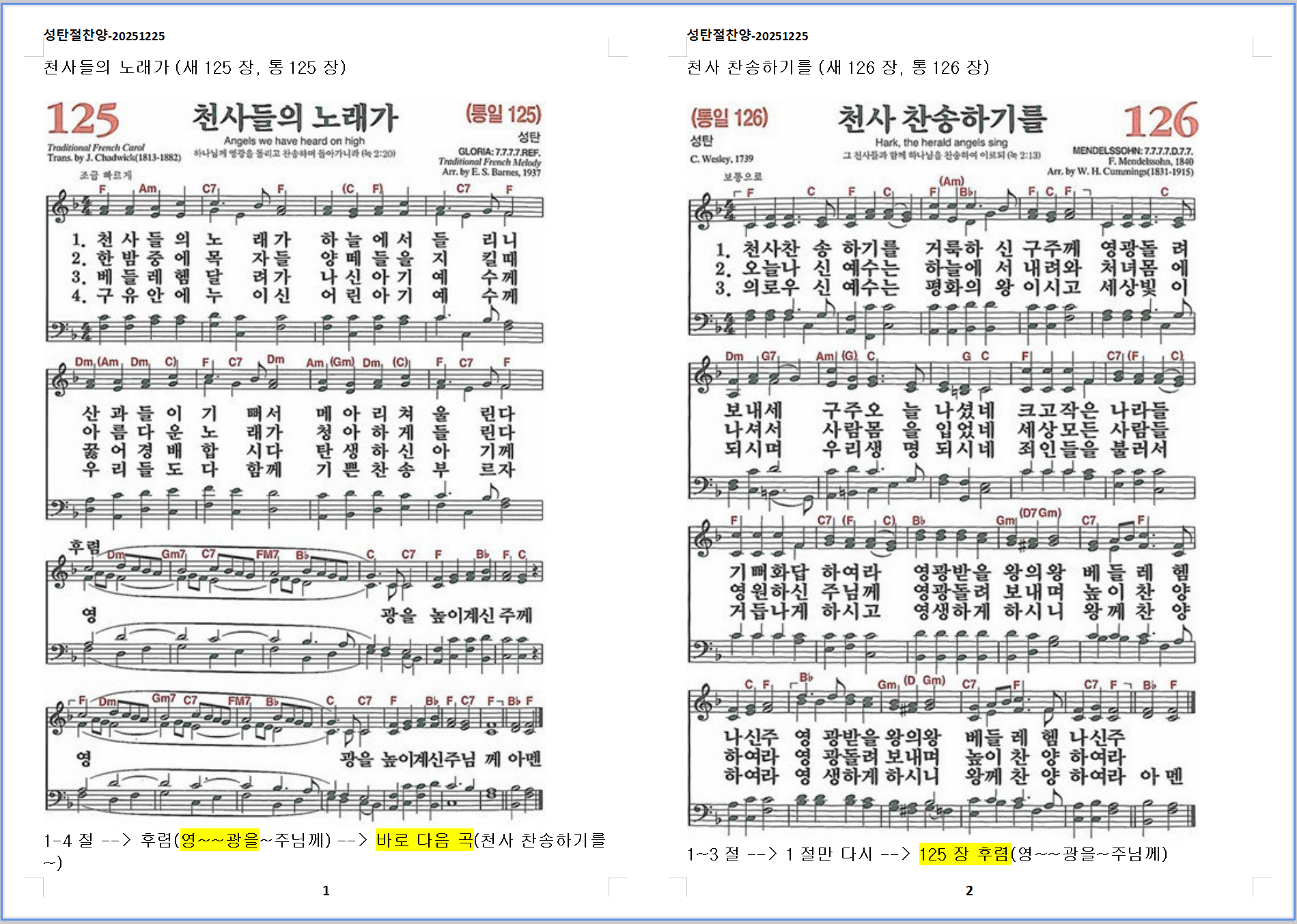 1. 천사들의 노래가 (새125장, 통125장)