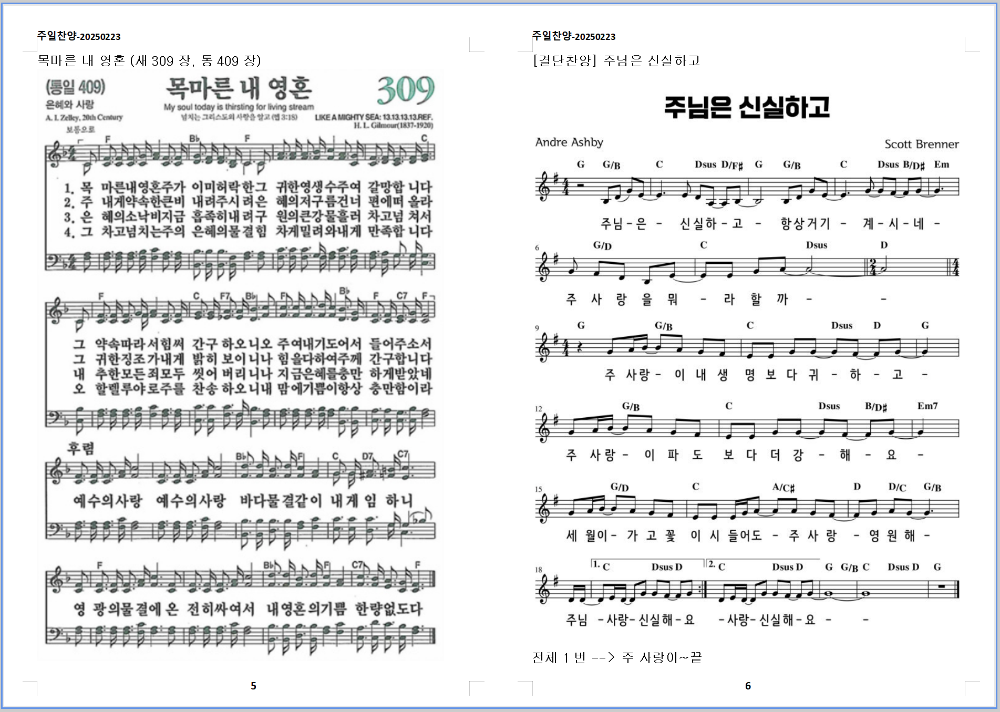 5. 찬송가 - 목마른 내 영혼 (새309장, 통409장)
