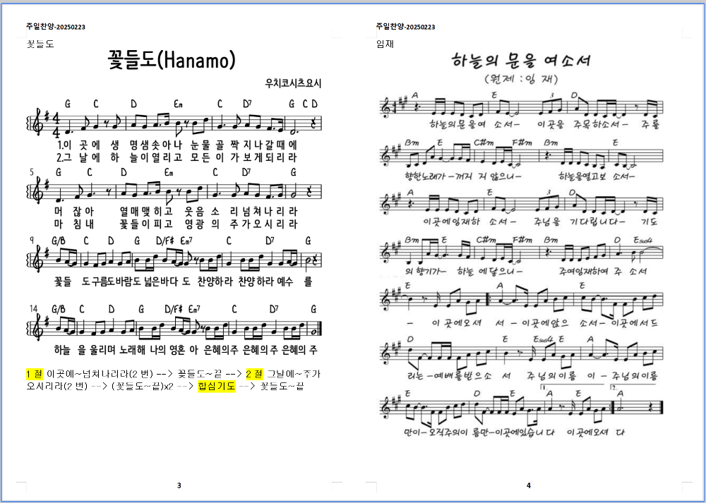2025. 2. 23. 하늘소망교회 주일예배 찬양 콘티