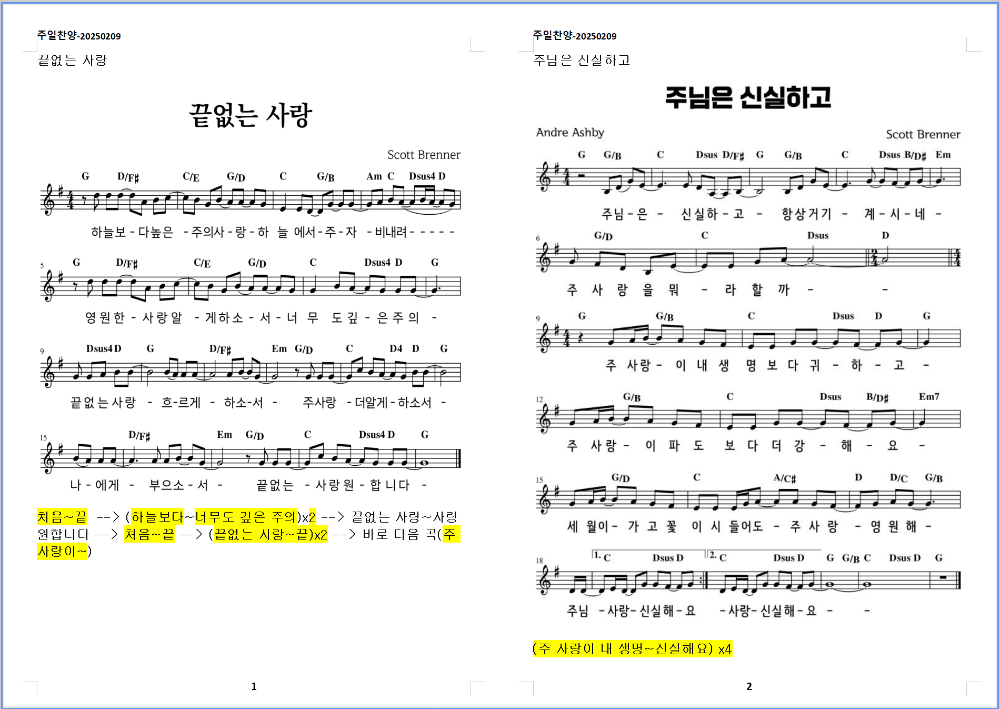 2. 주님은 신실하고 (G코드)