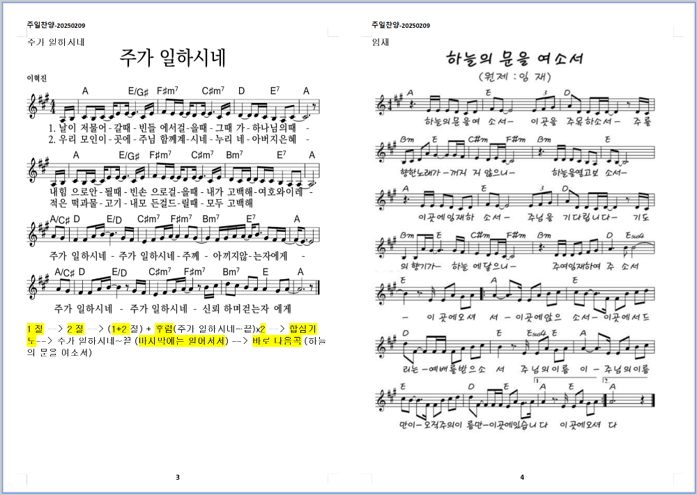 2025. 2. 9. 하늘소망교회 주일예배 찬양 콘티