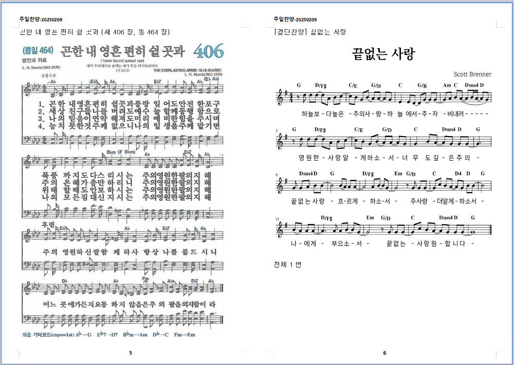 5. 찬송가 - 곤한 내 영혼 편히 쉴 곳과 (새 406장, 통 464장)