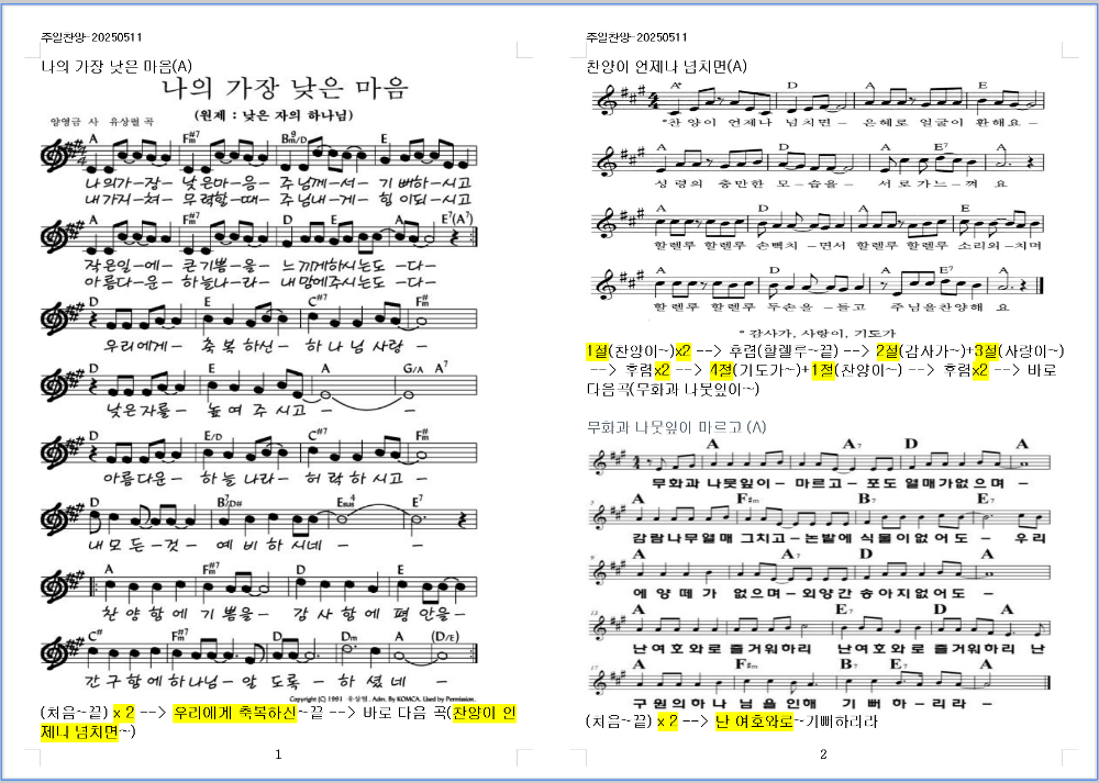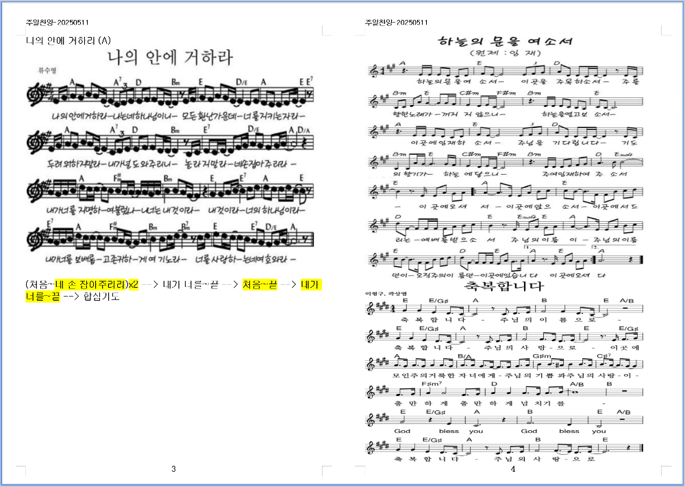 2025. 5. 11. 하늘소망교회 주일예배 찬양 콘티