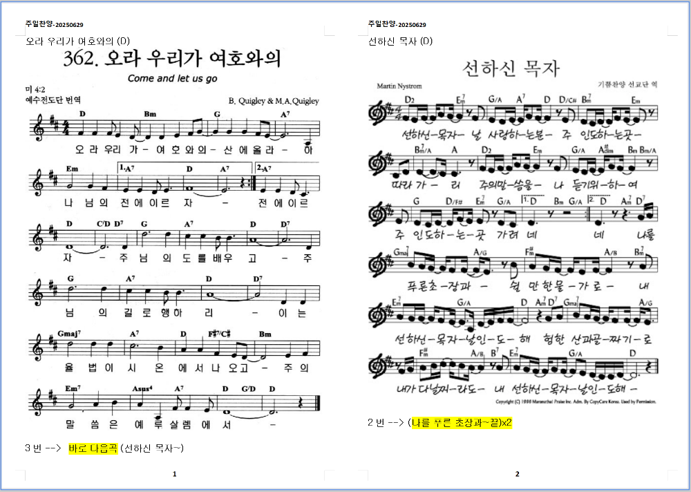 2025. 6. 29. 하늘소망교회 주일예배 찬양 콘티