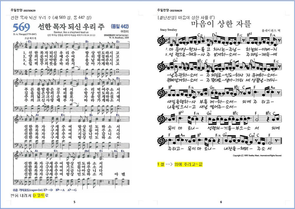 5. 찬송가 - 선한 목자 되신 우리 주 (새569장, 통442장)