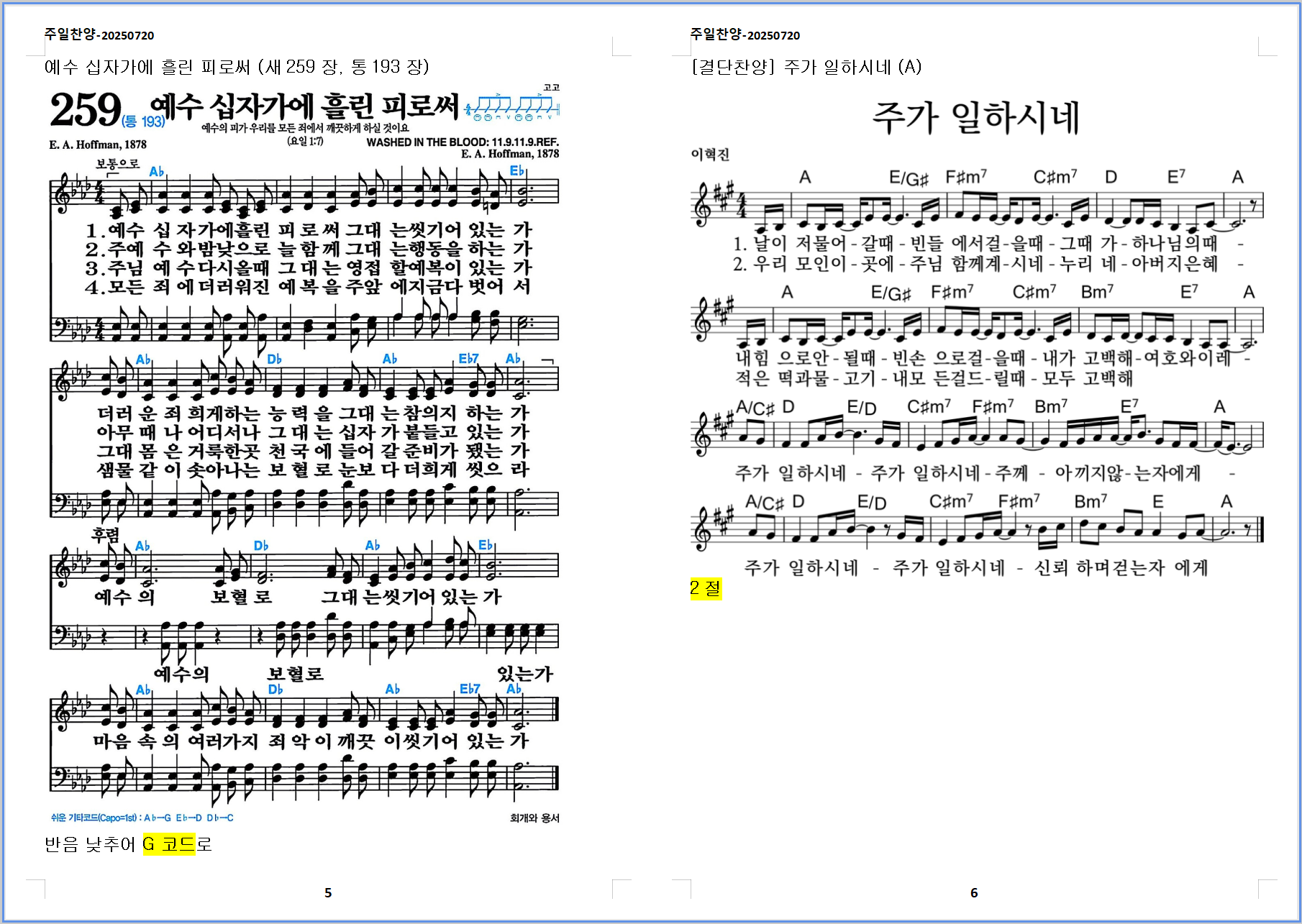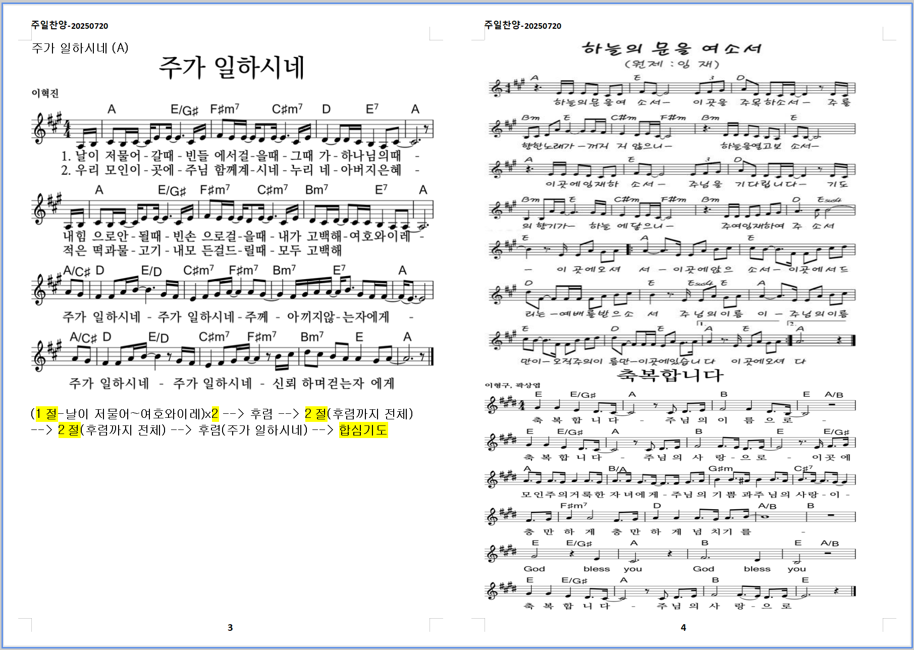 2025. 7. 20. 하늘소망교회 주일예배 찬양 콘티