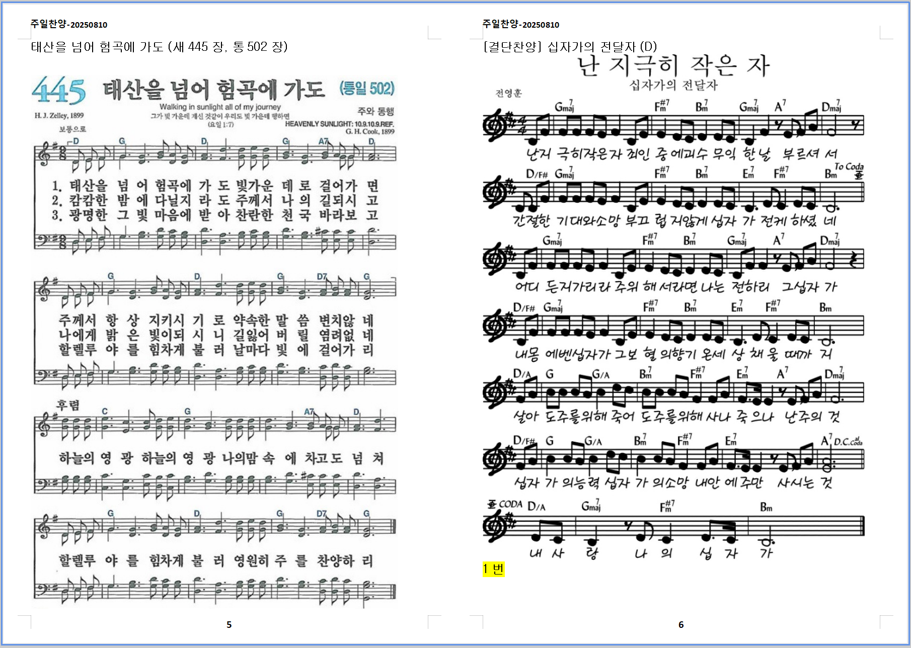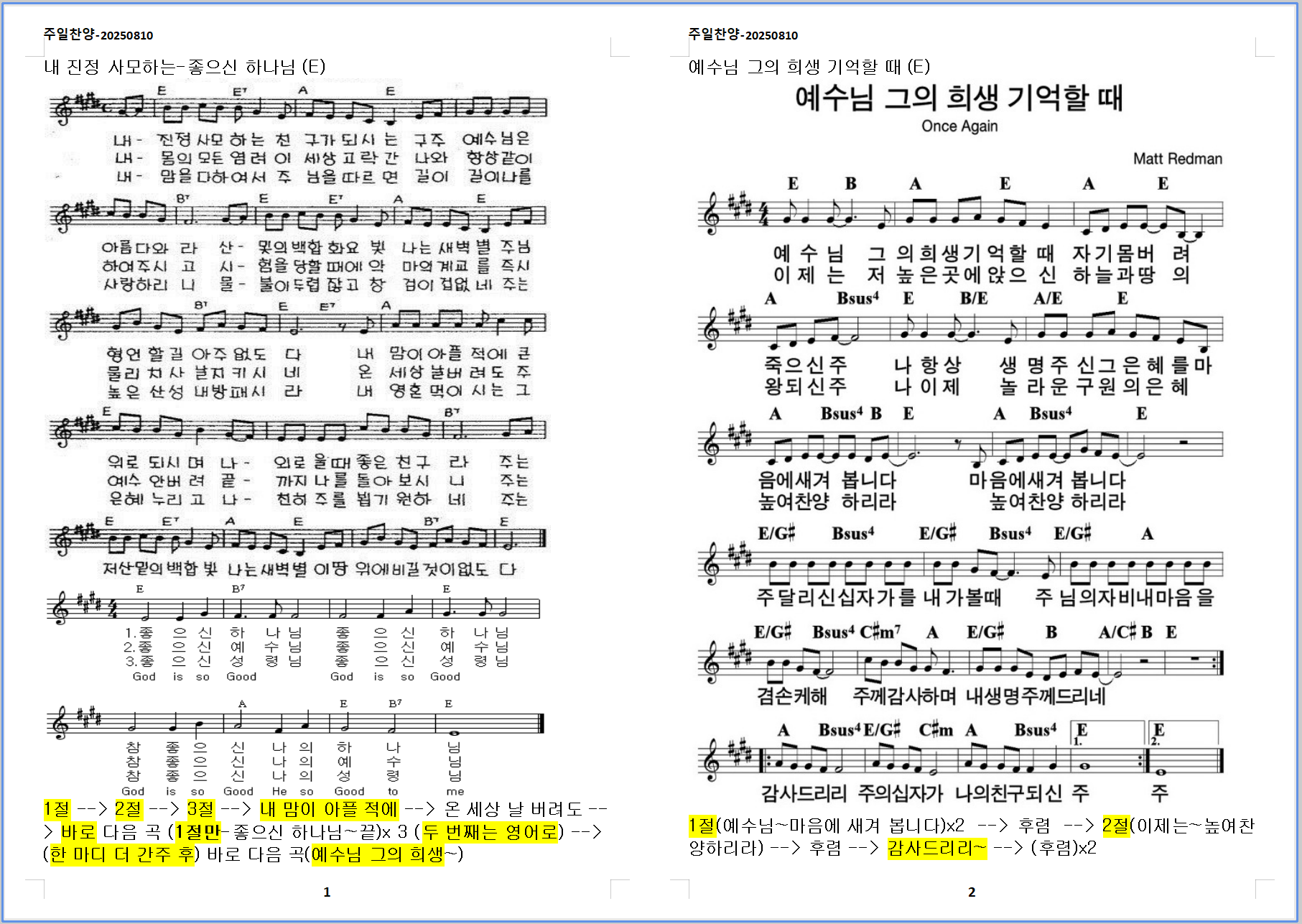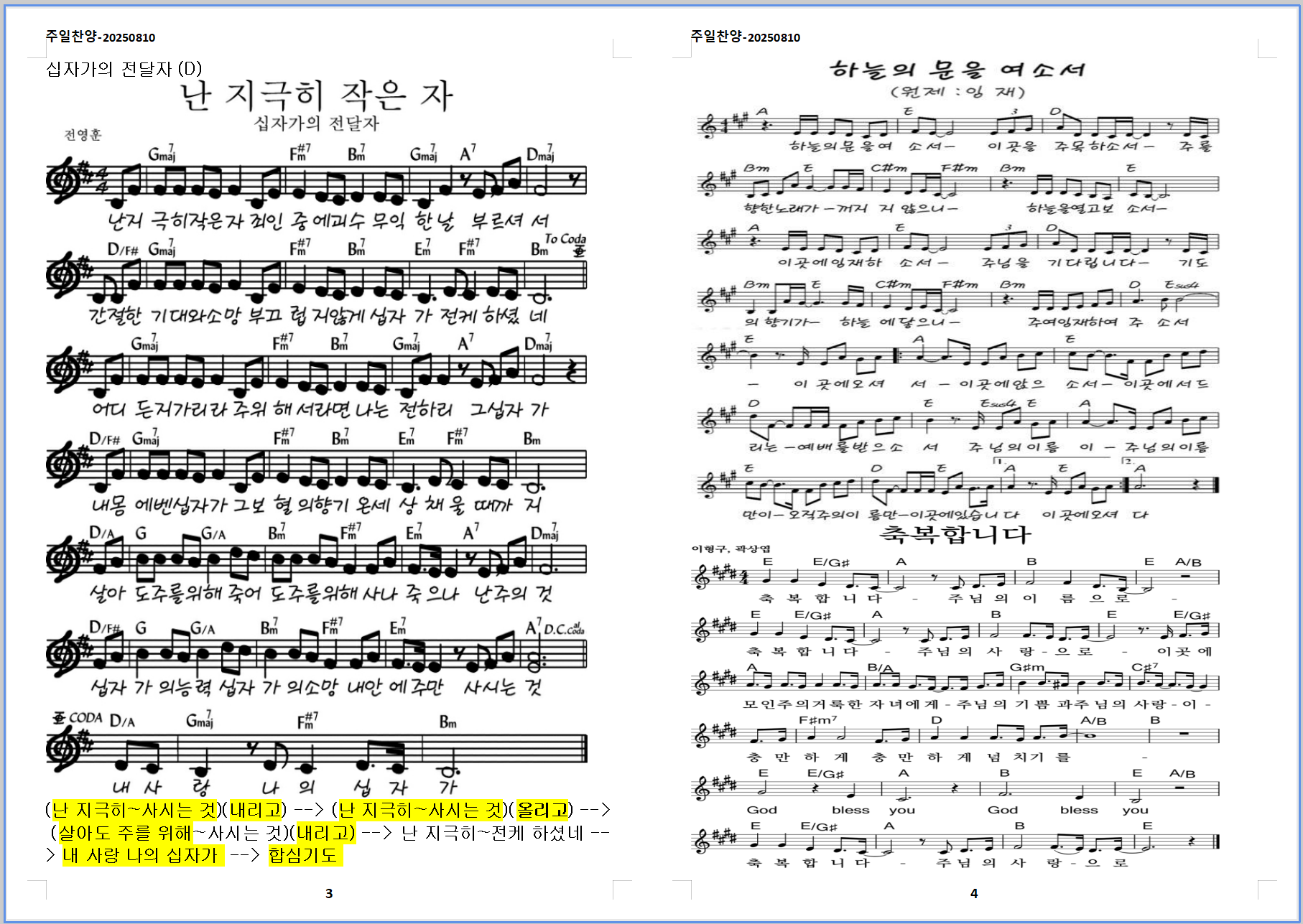 2025. 8. 10. 하늘소망교회 주일예배 찬양 콘티