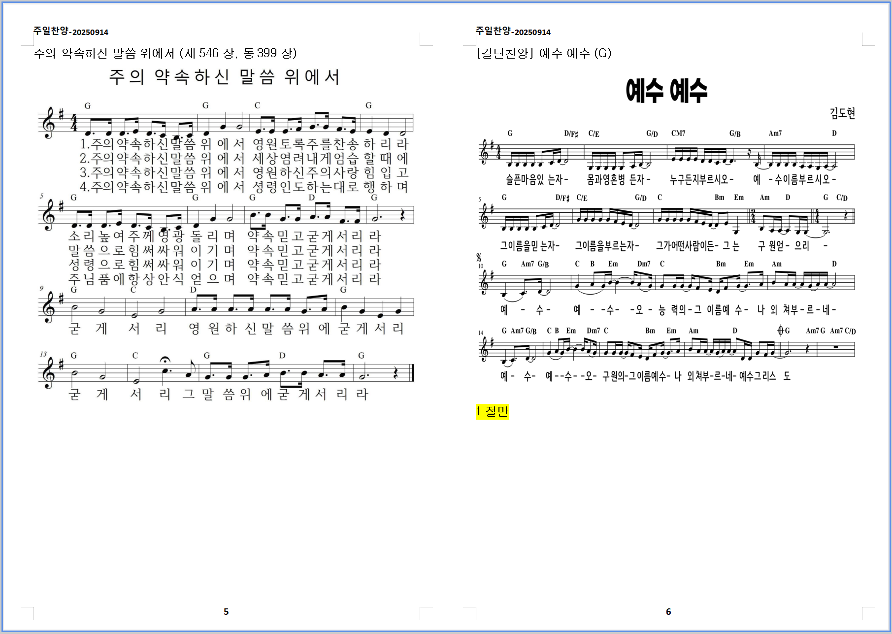 1. 예수 예수 (G)