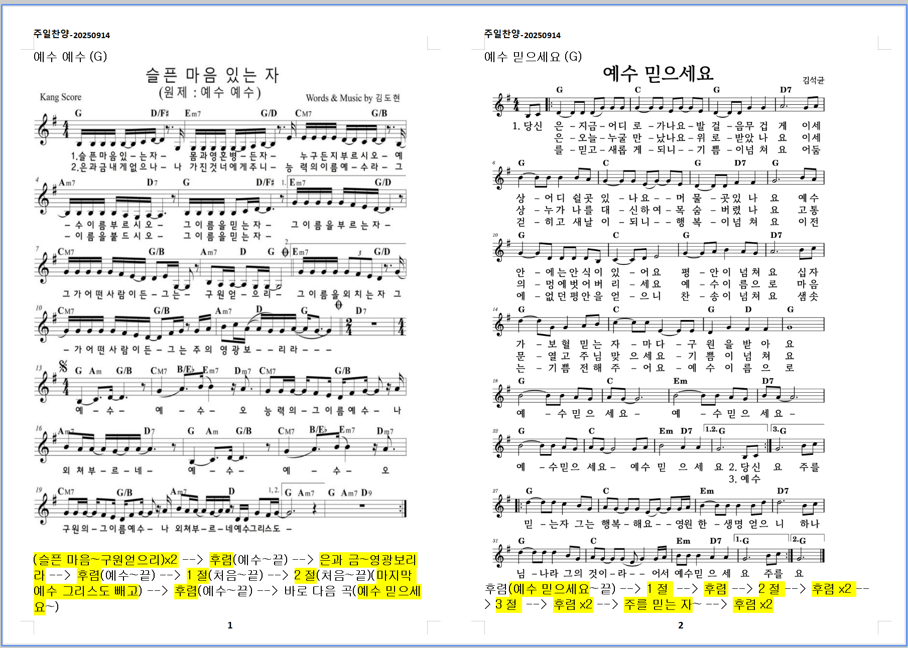 2. 예수 믿으세요 (G)
