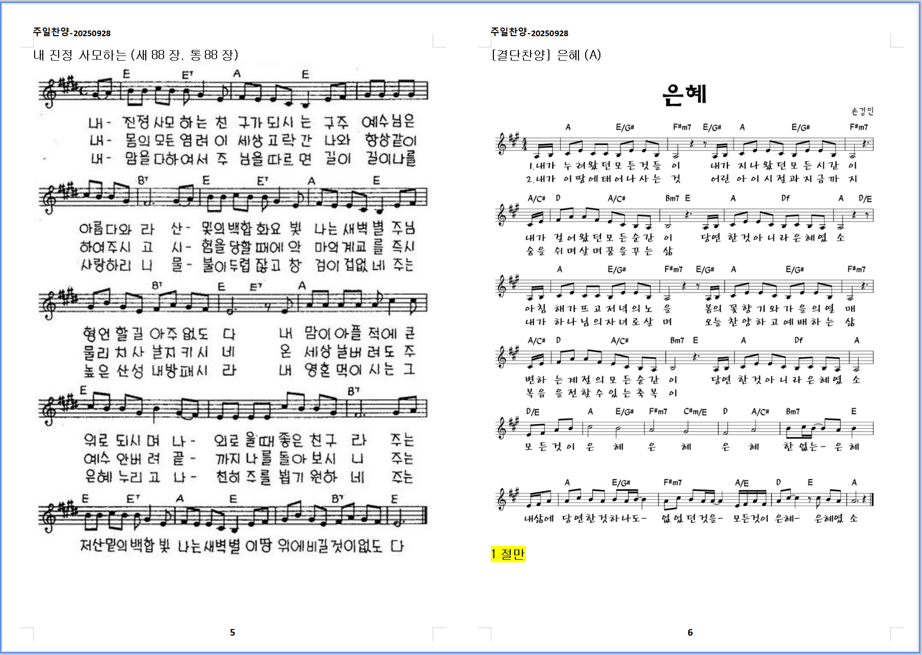 2025. 9. 28.  하늘소망교회  주일예배 찬양 콘티