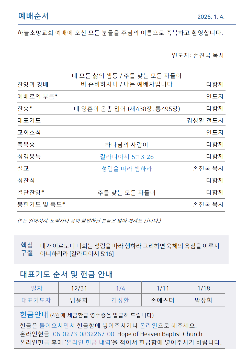 하늘소망교회 제 114호 주보
